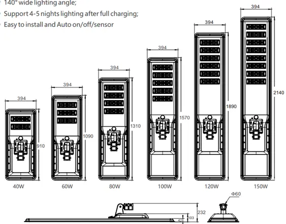 | Dimensions (mm) | 910×395×103 | 1000×395×103 | 1200×395×103 | 1507×395×103 | 1809×395×103 | 2140×395×103 |