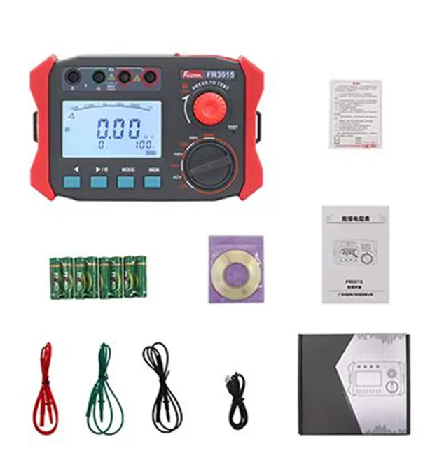 The FR3015 Insulation Resistance Tester from FUZRR Technology is a professional-grade megohmmeter designed for testing insulation strength in transformers, motors, cables, and electrical equipment. With a maximum test voltage of 2500V and a wide resistance measurement up to 100.0GΩ, the FR3015 provides accurate and reliable results even in demanding environments. It features a large, backlit LCD, 500 data memory, USB connectivity, and advanced diagnostic functions like DAR and PI measurements, making it an essential tool for electrical maintenance, energy industries, and manufacturing sectors.